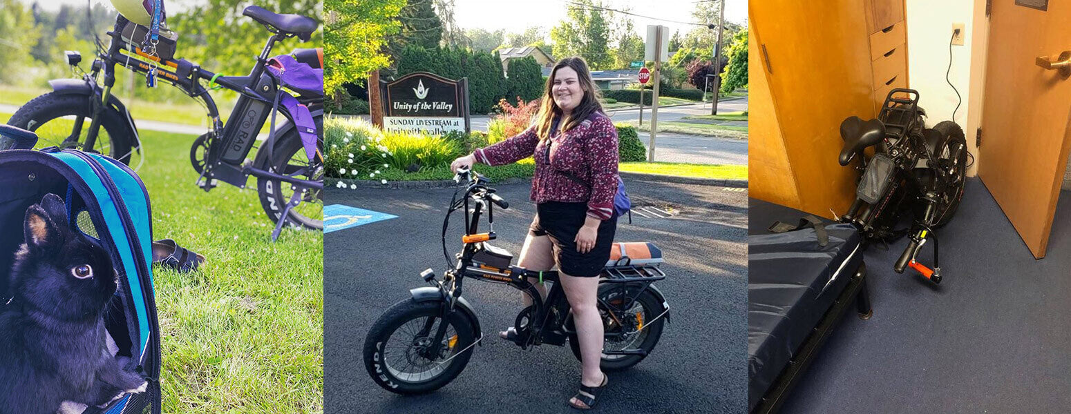 The RadMini made it easy to get to traverse the University of Oregon campus, but for Tawny, those daily trips were just the beginning. She’d use her bike to explore local bike trails, head downtown to pick up the occasional pizza, and commute to her off-campus job.
